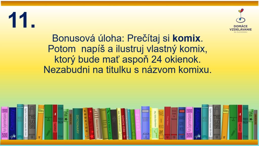 - Každá práca musí obsahovať viditeľne uvedené meno dieťaťa, názov knihy a meno autora knihy – priamo na fotke práce ako súčasť vypracovania zadania.
